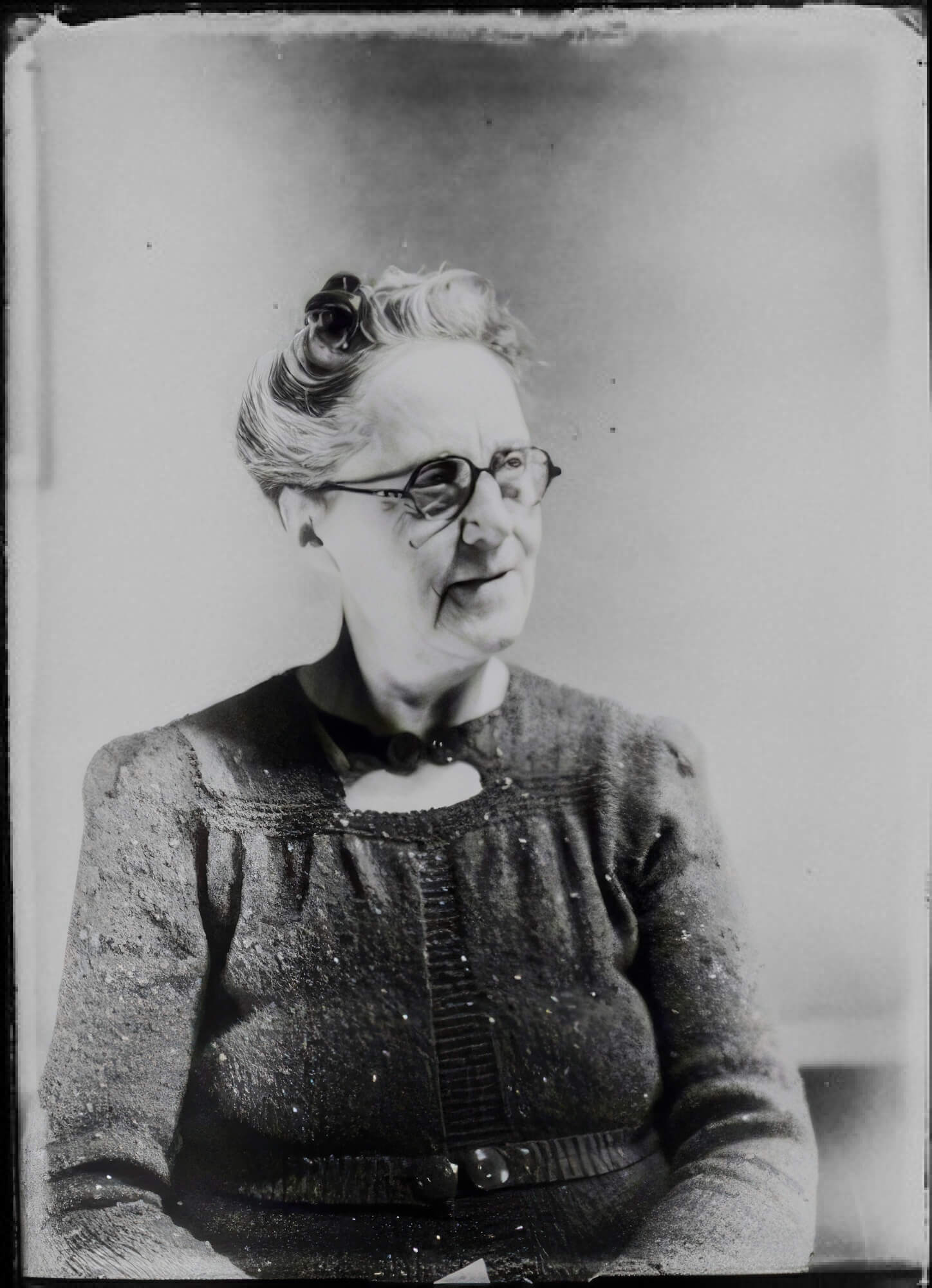 A greyscale portrait enhanced with AI-powered upscaling, showcasing fine detail recovery in facial features and textures.